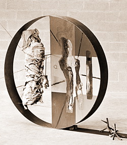 В завершении разговора я попросил Энцо Форнаро прокомментировать одно из представленных на выставке произведений, но он объяснил, что «Колонна позора» хоть и состоит из четырех частей, но является единым произведением, [ 2] в котором «художники показывают различные фазы того события, какое они описывают».