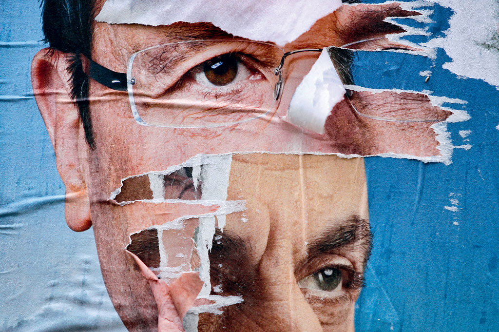 Апрель, выборы. Кто-то пытался заклеить лик Олланда ликом Саркози. Не помогло...