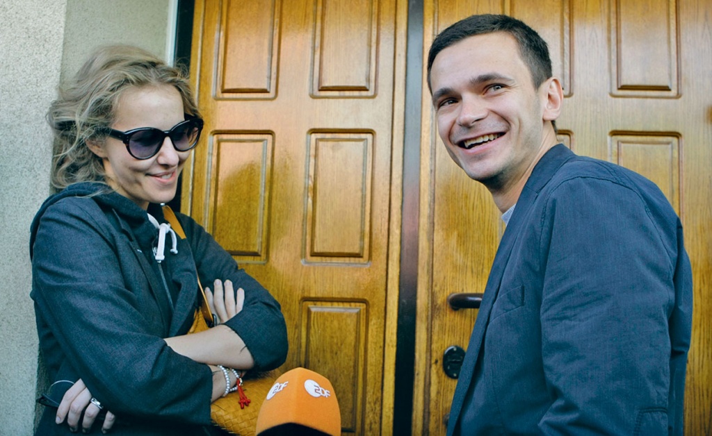 Татьяна Яшина: С Ксюшей мы познакомились… Да, это была Пушкинская, митинг на следующий день после (президентских) выборов, 5 марта, фонтан. Фонтан, естественно, не планировался: Удальцов объявил, дескать, мы никуда не уйдем. Илья потом рассказывал, что очень ругался: «Серега, ну ты идиот, сейчас мы продрогнем в этом фонтане, как полные дураки, а результат будет нулевой», — как-то так они спорили. Мы на этом митинге не были, потому что он не любит, когда мы приходим, говорит, я должен себя чувствовать свободно и не думать, что вы где-то рядом и с вами что-то может случиться. По той же причине он и Ксюше запретил на Пушку приходить, а у нее в этот вечер был концерт. Короче, Илью задержали, и мы поехали в ОВД на Войковской. Поставили машину, идем — толпа людей, автозак, видим: вдоль автозака ходит Ксюша с телефоном. Подходим к автобусу, стоим у двери: мы с одной стороны, она — с другой, смотрит на дверь. Дверь открывается, оттуда выходит Илья, она бросается ему на шею. Сзади конвой. Илья видит нас и говорит: «Вот мои родители, познакомься, пожалуйста». Так мы с Ксенией и познакомились.