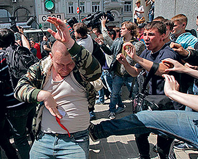 Полиция разогнала пикет ЛГБТ-активистов у зданий Мосгордумы и мэрии Москвы. Около 40 человек задержаны, причем в этой компании оказались как сами активисты, так и «православные хоругвеносцы», которые попытались на них напасть.
