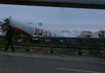 Два человека погибли в результате крушения Ту-204 в аэропорту "Внуково", сообщает "Россия 24". Самолет российской авиакомпании Red Wings, совершавший рейс из Пардубице в Чехии, выкатился за пределы посадочной полосы на Киевское шоссе, разрушился и загорелся. По разным данным, на борту было от 8 до 12 человек, пассажиров среди них не было. Погибшие - командир экипажа и второй пилот.