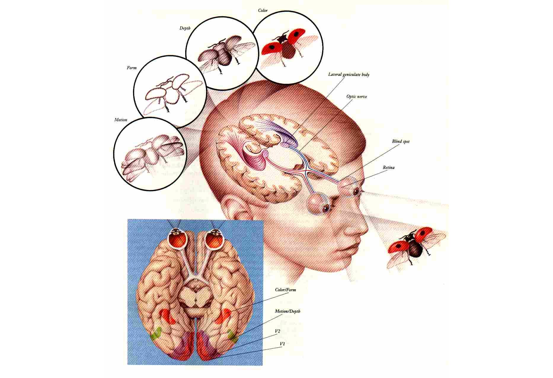 Дальше возникает интересный вопрос: что получается со зрительным восприятием, если вдруг эта связь разорвана? Еще до возникновения приборов неврологи и нейрохирурги прекрасно знали о нарушении зрительного восприятия, которое чрезвычайно специфично по отношению к тому, какая зона мозга, участвующая в обработке зрительной информации, нарушена.