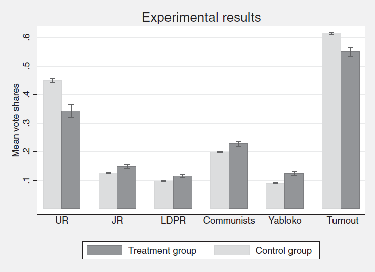 В журнале Proceedings of the National Academy of Sciences вышла статья со статистическим анализом результатов голосования на парламентских выборах в Москве в декабре 2011 года, в котором описывается то, что авторы называют «масштабным полевым экспериментом»: методом систематической выборки были определены 156 избирательных участков (примерно 5 процентов от общего числа обычных избирательных участков в Москве), куда направила наблюдателей общественная организация «Гражданин наблюдатель». Исследователи делают вывод, что партия «Единая Россия» получила в городе по крайней мере на 11 процентов меньше, чем было объявлено официально (36 процентов вместо 47). Тут самые нетерпеливые могут перескочить к численным результатам исследования, с остальными продолжим говорить о научном методе.