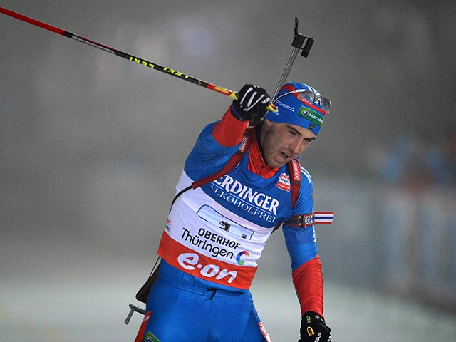Россиянин Дмитрий Малышко финишировал первым с российским флагом в воскресной гонке преследования на 12,5 км с четырьмя огневыми рубежами на четвертом этапе Кубка мира по биатлону в немецком Оберхофе.