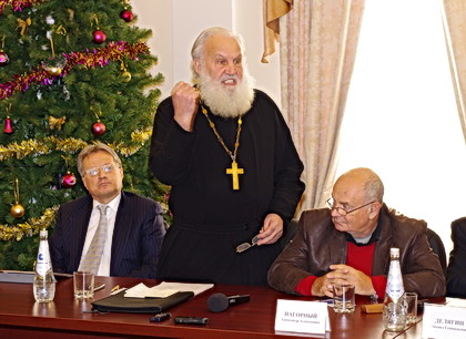 Как может чувствовать себя условный либерал, попавший на заседание Изборского клуба? Как махаон в термитнике. Как «враг народа» в бараке для «социально близких». Как стиляга в желтом пиджаке и с коком — на комсомольском собрании. Как Штирлиц в приемной Гиммлера («В этот день Штирлиц был на грани провала»). Как белый, по дурости забредший в «Макдоналдс» в черном квартале Вашингтона (имел я однажды такую глупость). Как-то так. Самое умное — сидеть в уголке, вопросов с либеральным подтекстом не задавать, слушать и мотать на ус. И получать эстетическое удовольствие от выступлений. Например, ректора Уральского института бизнеса имени Ивана Ильина протоиерея Александра Меняйло: «Русский язык — божественный. Ну как можно перевести на английский язык “Боже, помилуй меня”? Тьфу!» Благодаря этому священнику я, кстати, узнал, что бывает православная экономика: «Нам не надо конкуренции, нам нужна соборность. Вы желаете добра мне, а я вам. Какая тут конкуренция? Мы братья и сестры!». Или: «Финансы, ростовщичество, процент — величайший грех. Банки должны брать только за услуги… Мы должны изменить хозяйственную практику. Мы работаем над созданием теории высшего хозяйства, некапиталистической духовно-нравственной экономики. Сегодня нам экономику преподносят по американским учебникам. Мы должны создать отечественный учебник экономики». Было бы интересно взглянуть на учебник русской православной физики, химии и биологии. И особенно — русского православного английского языка.