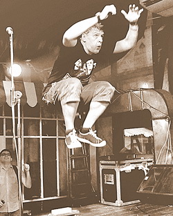 В тот вечер мне пришлось усиленно ловить в объектив фотоаппарата солиста группы Антона Слепакова. Он был нужен в привычном своём состоянии, то есть в полёте. Наконец, поймал. Хотелось проиллюстрировать песню со словами «я буду прыгучим лягушонком».
