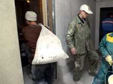 Сначала не выдержали трубы - уже под Новый год, 30 декабря, в общежитии прорвало трубы. Ребята бросились наверх: "Прекратите работы, нас заливает, трещины идут". А бригадир, командующий рабочими, просто сказал: " А мне по хрену".