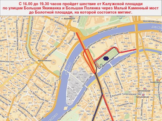 То, что уговор с властями в процессе согласования был именно таким, подтверждается на сайте ГУ МВД Москвы. К сообщению от 5 мая 2012 года, опубликованному в 18 часов, прилагается схема мероприятия, на которой видно: сцена должна располагаться в сквере на Болотной площади.