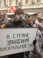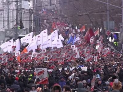 Десятки тысяч человек прошли по Бульварному кольцу от Страстного до проспекта Сахарова. Участники марша несли портреты парламентариев, проголосовавших за "закон Ирода". В конце шествия портреты полетели в мусорный бак.