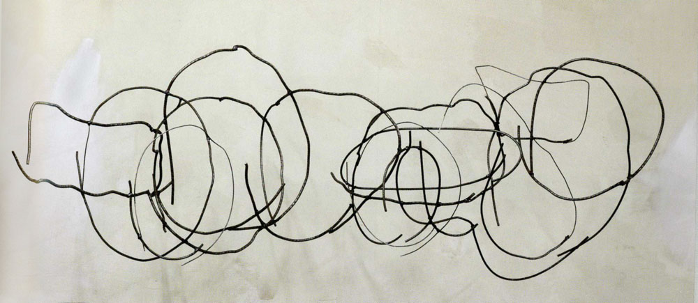 Джон Кейдж, Мерс Каннингем и Роберт Раушенберг. Фото Ричарда Аведона. Но «все, что угодно» нельзя понимать буквально - как для дзенской живописи тушью необходима высокая степень внутренней концентрации и предварительная подготовка, так и за партитурами Кейджа скрывается сложнейший процесс. «Уильямс-микс» они вдвоем с Берном писали 5 месяцев подряд с 10 утра до 5 вечера, бросая монеты. Комбинации аверсов и реверсов определяли последовательность и характер звука, материалом, из которого выбирали, были отрезки магнитных записей, разложенные в 175 конвертов, и распределенные по 6 коробкам с темами «городские звуки», «деревенские», «произведенные вручную, в том числе и «нормальная» музыка»… Несмотря на всю проделанную над «Уильямс-микс» работу, Кейдж подыграл публике, полагавшей все это шутовством и обманом, и рассказывал журналистам, что получил эту композицию, когда взял веник и смел вместе обрезки пленки, валявшиеся на полу. Дмитрий Гутов в своем посвящении Кейджу переводит рисунок композитора, изображающий сад камней «Рёанцзи», в объемный контур из гнутой проволоки. Со всех сторон – это просто завитки ржавого прута, мусор на веревочке – но с одной точки зрения, которую зрителю надо еще найти, все складывается в рисунок сада. Хаос и случайность имеют смысл только тогда, когда к ним приложен разум человека.