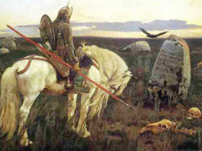 В.М. Васнецов "Витязь на распутье" Все внешние задачи, пусть даже и хорошие, полезные, оборачиваются слабыми проектами. Заморозить страну и общество – слабый проект, эволюционно потихоньку улучшать, латать дыры – тоже. Вообще говоря, сильный проект не обязательно предполагает вселенский прожектерский масштаб и великие потрясения, сильная страна тоже сама по себе есть сильный проект, но именно его и нет. Предложенная В. Пастуховым в веберовском духе возгонка эффективности бюрократии может быть частью сильного проекта, но оформлять его нельзя через техническую идею «оптимизации». Сила предполагает «Большую Стройку». Ликвидация чего-то с корнем, например, бездорожья, социальной бедности – тоже будут работать, если свяжутся с идеей «Очищения». Харизматизм 90-х, который у интеллигенции принято оплакивать, строился именно на этой идее. Но для нее не хватает трех вещей: экспиативной инстанции (ибо административный рынок поглотил церковь), абсолютности закона (ибо он пожрал и суд) и понимания социально-хозяйственного характера нашего народа.