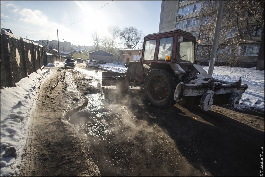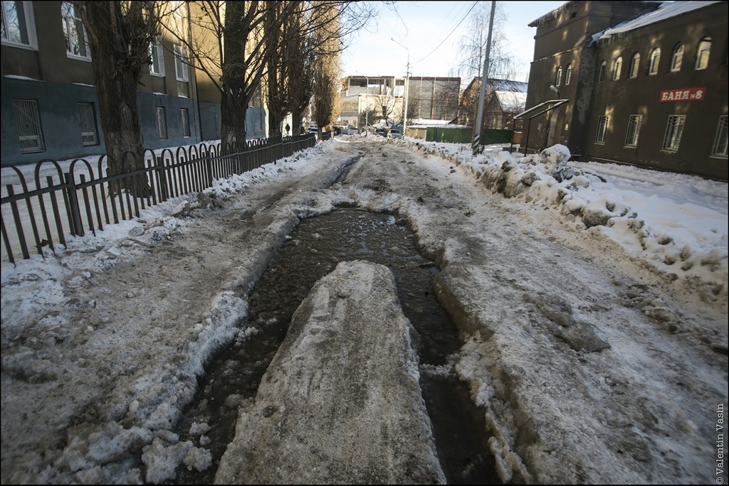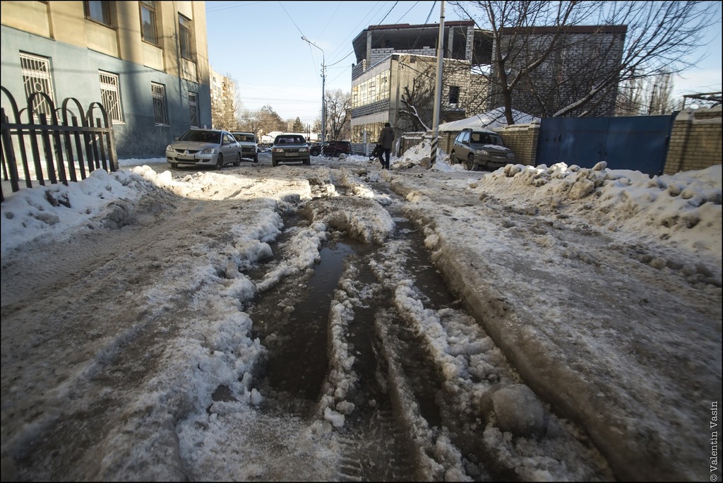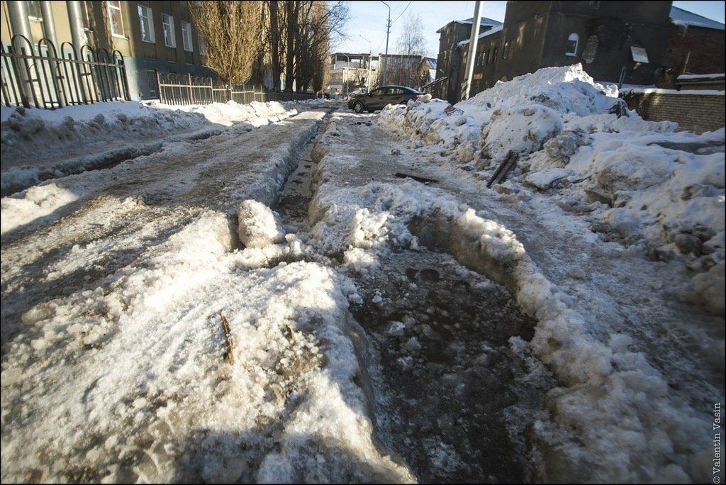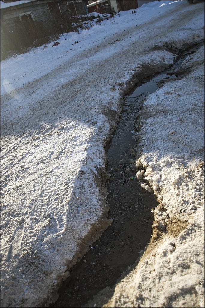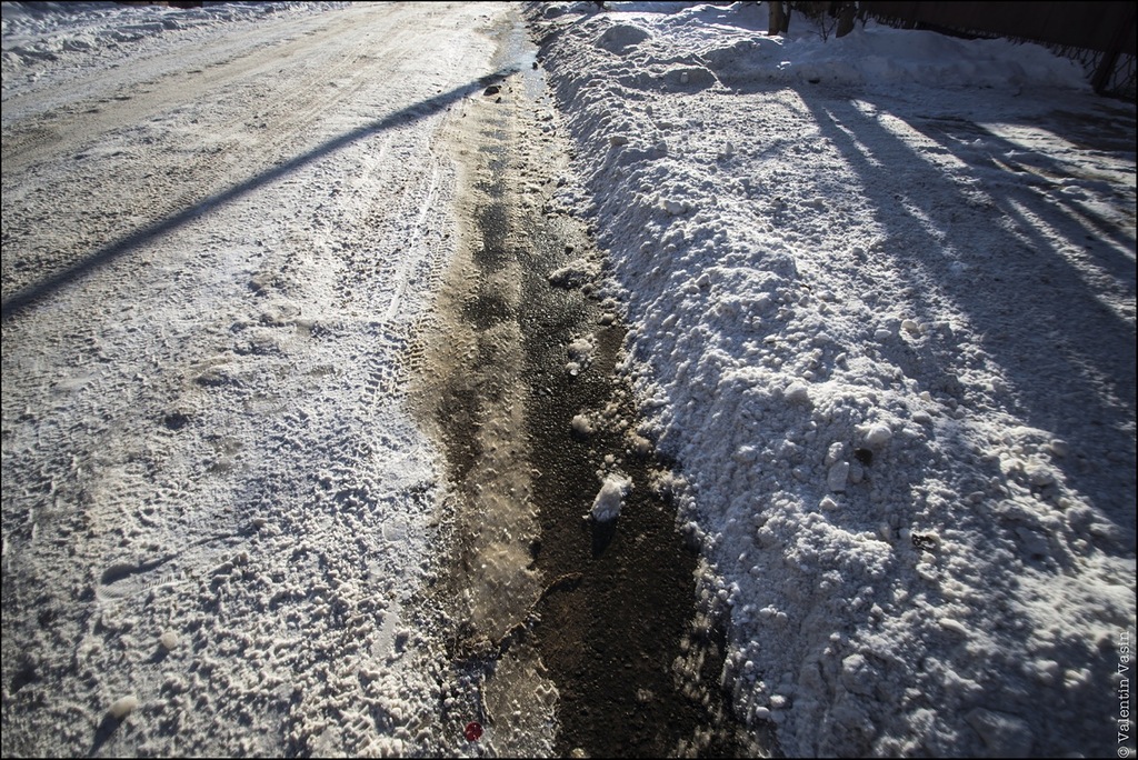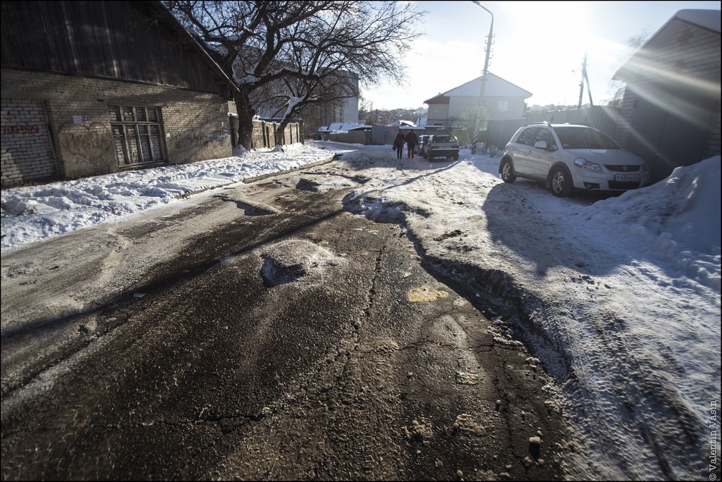 Правда, на этой улице наши власти позапрошлой осенью положили свеженький асфальт. Но почему-то очень торопились и этот асфальт весь по весне сошел вместе со снегом. Ну, да и это не беда. Начнем фотографии выкладывать.