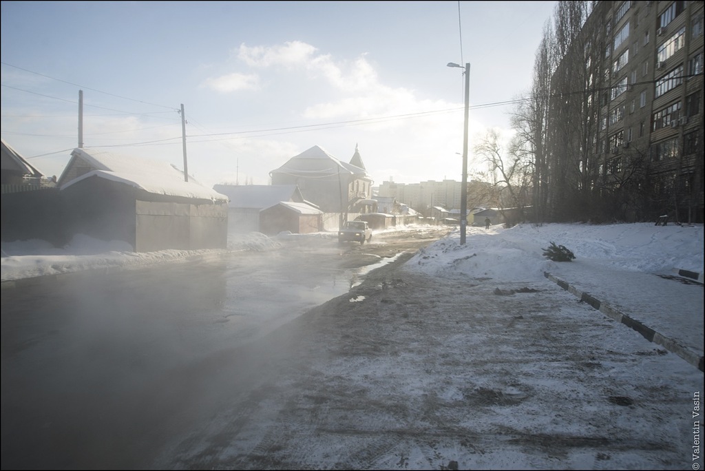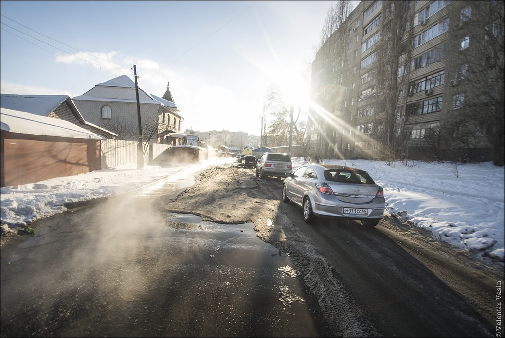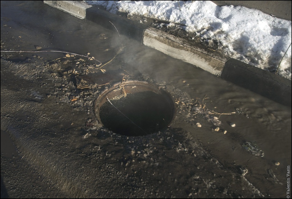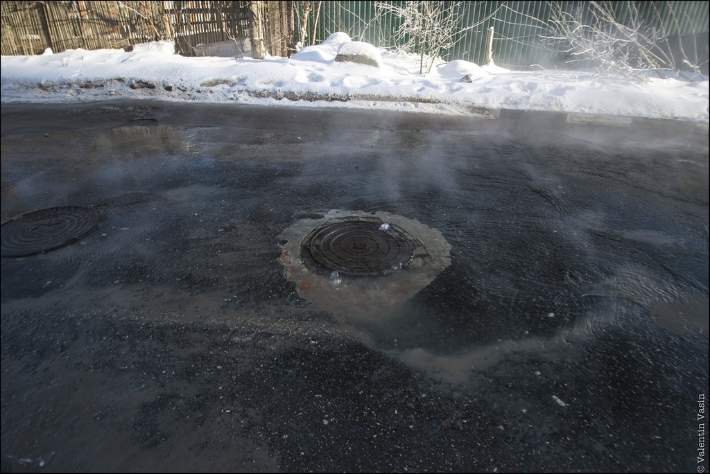 2. Это первый случай в моей жизни, когда я рад открытому люку на дороге. Из одного горячая вода хоть и частично, но перетекает в другой. Это избавляет дорогу от еще большей наледи.