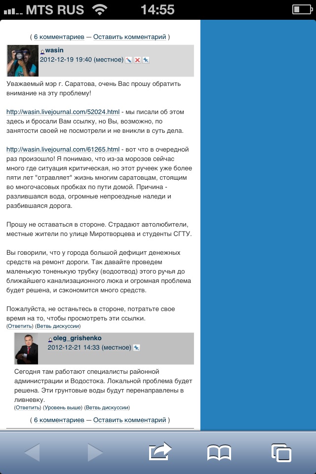 Один раз уважаемый мэр или тот, кто ведет блог oleg_grishenko место него, ответил мне: