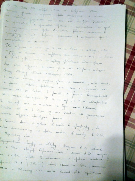 И последнее, наконец, я получила прямо на комиссии, когда, поняв, что факты и доводы, приводимые мной, там не нужны, что мнение мое не берется в расчет, я решила воспользоваться 51-й статьей конституции РФ до тех пор – и я это подчеркиваю, – до тех пор, пока на комиссии не будет моего адвоката. Очевидно, что ни в одном из этих действий нет желания нарушать пресловутый режим.