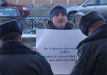 Пикет памяти Долматова у голландского консульства в Петербурге. Надпись на плакате "Правительство Нидерландов - убийцы". Фото: drugros.ru