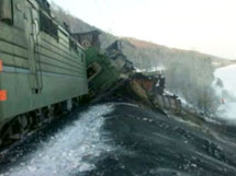 Отметим, что ровно неделю назад в Слюдянском районе Иркутсткой области на перегоне Байкальск - Утуликсошли сошли с рельсов 24 вагона, наполненные углем. При этом, пострадал проходящий в это же время по соседнему резервный локомотив. Он также сошел с рельсов, в результате чего погибли машинист и помощник машиниста локомотива. Из-за крушения состава на Транссибе было полностью остановлено движение, что привело к задержке пассажирских поездов. Предварительной причиной крушения был назван излом боковой рамы тележки одного из вагонов.
