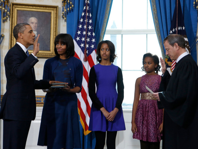 Обама присягнул в кругу семьи на верность Конституции и стране. "Ничего не испортил", похвалили дочери
