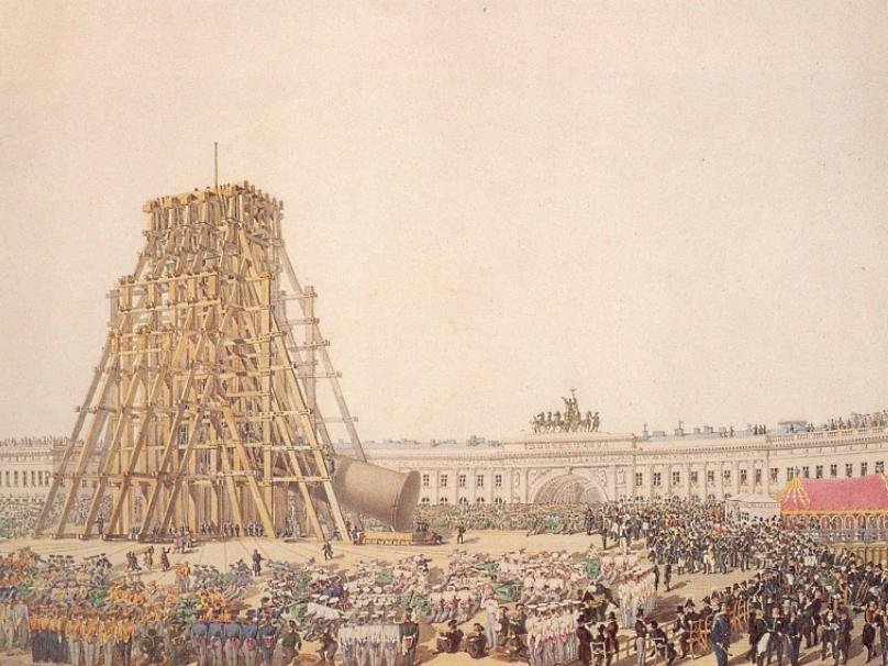 Леса для подъема Александрийского столпа. Система Бетанкура