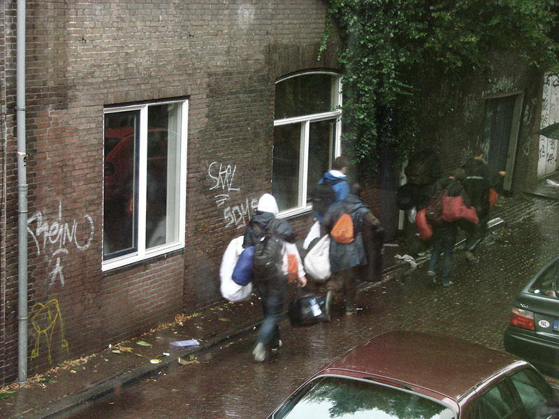 — Туда направляют тех, кто обращается за статусом беженца. Это открытый центр, туда можно приходить, свободно уходить оттуда. Чтобы туда попасть, нужно либо «сдаться» прямо в аэропорту, либо приехать в центр по приему беженцев в Тер-Апел. Лучше всего сделать это в первые дни после приезда, а не ждать, когда кончатся деньги и виза. Это место находится на северо-востоке страны, буквально в чистом поле, туда часа три добираться из Амстердама на перекладных. К тому же вас еще туда не сразу пустят. Сам я сидел перед закрытым шлагбаумом до вечера, рядом сидели африканские женщины с детьми. Многие, прождав полдня, уезжают. Остаются те, кому некуда идти. Вечером вышла тетка в униформе и спросила оставшихся: «Вы, наверное, замерзли? Может быть, хотите кофе?» Нас пустили внутрь, дали кофе и бутерброды. Несколько дней я провел в большом помещении, где люди спят на импровизированных матах и ждут вызова. Семьи могут занять отдельную комнату. Вещи сдают в камеру хранения, мобильный телефон разрешают оставить, но не смартфон. Там есть несколько холодильников с едой, титаны с кофе. Потом тебя вызывают, снимают отпечатки пальцев, выясняют, на каком языке ты говоришь и нужен ли тебе переводчик. После чего назначают первое интервью. На этом интервью спрашивают, как ты попал в Голландию, то есть соответствует ли твоя история Дублинской конвенции. В зависимости от этого решают, отправить ли тебя в открытый лагерь для беженцев или в закрытый депортационный центр, чтобы потом выслать.