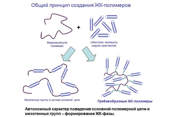 Идея сочетании свойств полимеров и жидких кристаллов возникла на заре ЖК-«бума» в лаборатории Химических превращений полимеров под руководством проф. Н.А. Плате совместно с сотрудниками В.П. Шибаевым и Я.С. Фрейдзоном. Так появились ЖК-полимеры гребнеобразного строения. Именно в этой лаборатории я работаю сейчас.
