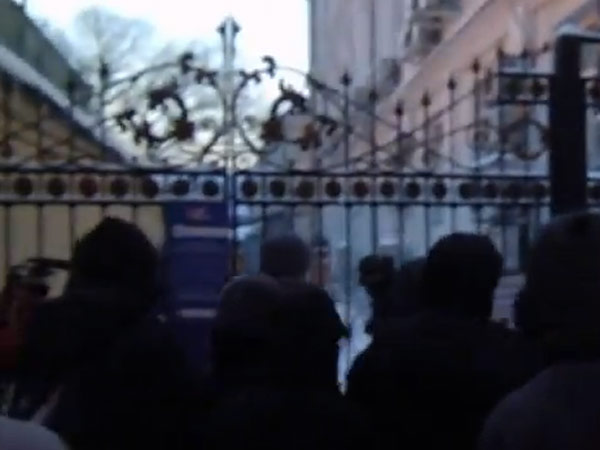 «РАЗ! ДВА! ТРИ! Давай, бл*дь! ЕЩЕ РАЗ! РАЗ! ДВА! ТРИ!», - безуспешно пытаемся продавить маленькую калитку, ту, что справа от ворот. Параллельно с этим кто-то заливает этих козлов газом. В растерянности чоповцы отбегают назад, я тоже начинаю чувствовать горький привкус во рту и острый приступ кашля, мы стремительно отходим от ограды. В охранников начинают лететь снежки и куски льда. Две минуты, чтобы отдышаться, и вновь начинается штурм ворот. Я чувствую, что постепенно всем начинает срывать голову.