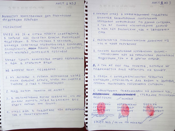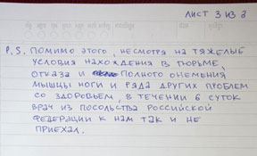 Кроме того, Полонский пожаловался, что на заключенных оказывается психологическое давление, а также с ними происходит нечто, о чем «не поднимается рука написать на бумаге». В постскриптуме бизнесмен написал, что несмотря на проблемы со здоровьем, в тюрьму так и не прибыл врач из российского посольства.