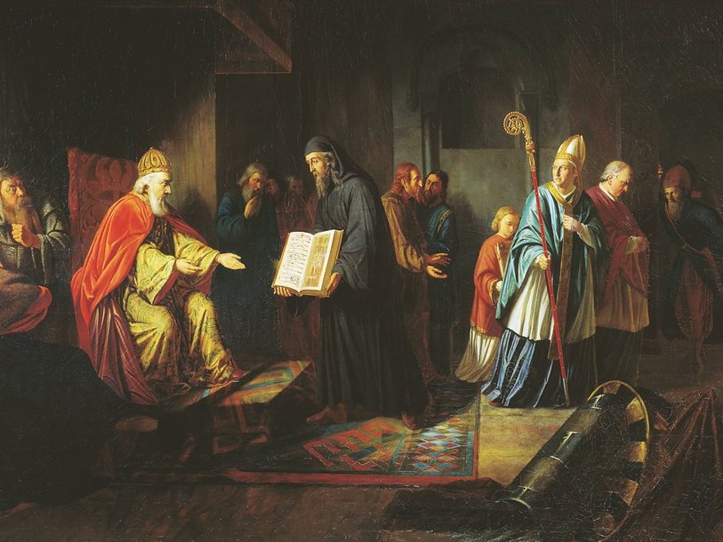 Великий князь Владимир избирает религию. И. Эггинк, 1822 Владимир Петрухин - доктор исторических наук, профессор кафедры Средневековья и раннего нового времени РГГУ, ведущий научный сотрудник, профессор Института славяноведения Российской академии наук. О происхождении хазар, о попытках археологов отыскать столицу Хазарии город Итиль, а также о том, почему хазары стали иудеями, он рассказал Борису Долгину, Дмитрию Ицковичу и Анатолию Кузичеву в программе «Наука 2.0» - совместном проекте портала «Полит.ру» и «Вести.FM». Перед вами краткое содержание беседы. Аудиозапись передачи доступна здесь.