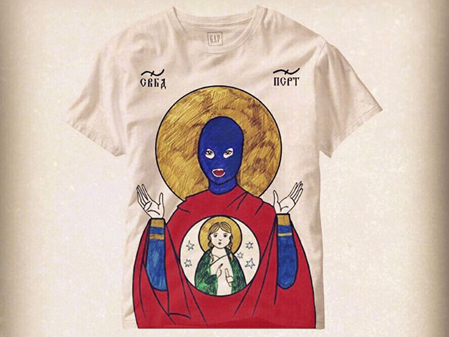 На футболках, оскорбивших религиозные чувства верующих, изображена та же самая "икона", за появление которой в Новосибирске художник был оштрафован судом на общую сумму в 1 тысячу рублей.