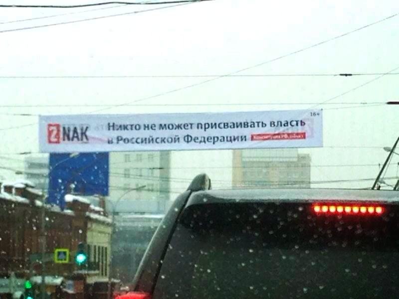 «Повесили! Сильно получилось! Не просто было украсить улицы Екатеринбурга статьями Конституции РФ. Сначала запрещали под предлогом, что «наружная реклама с цитатами из Конституции не может находиться рядом с детскими и юношескими учреждениями». Ага, а то дети гражданами вырастут. А потом и вовсе заявили, что это... экстремизм (!). Смеяться некому».