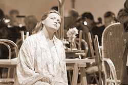 Все действия «Богемы» превращены в картины. Последняя из них, самая большая, бережно выставляется в подрамнике на авансцену, проносится над кроватью с уснувшей навсегда Мими и опускается вниз, отделяя героиню от зрителей.