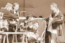 Беззаботные молодые герои (поэт Рудольф – Станислав Леонтьев, живописец Марсель – Сергей Романов, музыкант Шонар – Денис Колесников и философ Коллен – Алексей Сазонов), пускают в печную трубу вдохновение, уклоняются от платы за жилье, не желают и не могут расплачиваться за вечеринку в Латинском квартале.