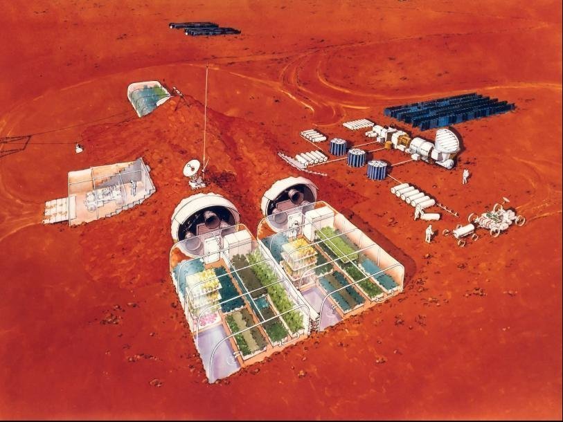На планету также привезут материалы для строительства прозрачных куполов, которые создадут давление марсианской атмосферы, пока состоящей из углекислого газа, достаточное для того, чтобы здесь на местной почве можно было выращивать привычные нам растения, а впоследствии - и зерновые культуры. С годами колония будет становиться все более и более автономной и самодостаточной, и сюда будут привозить все больше людей и все меньше - стороннего оборудования.