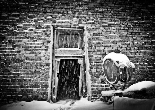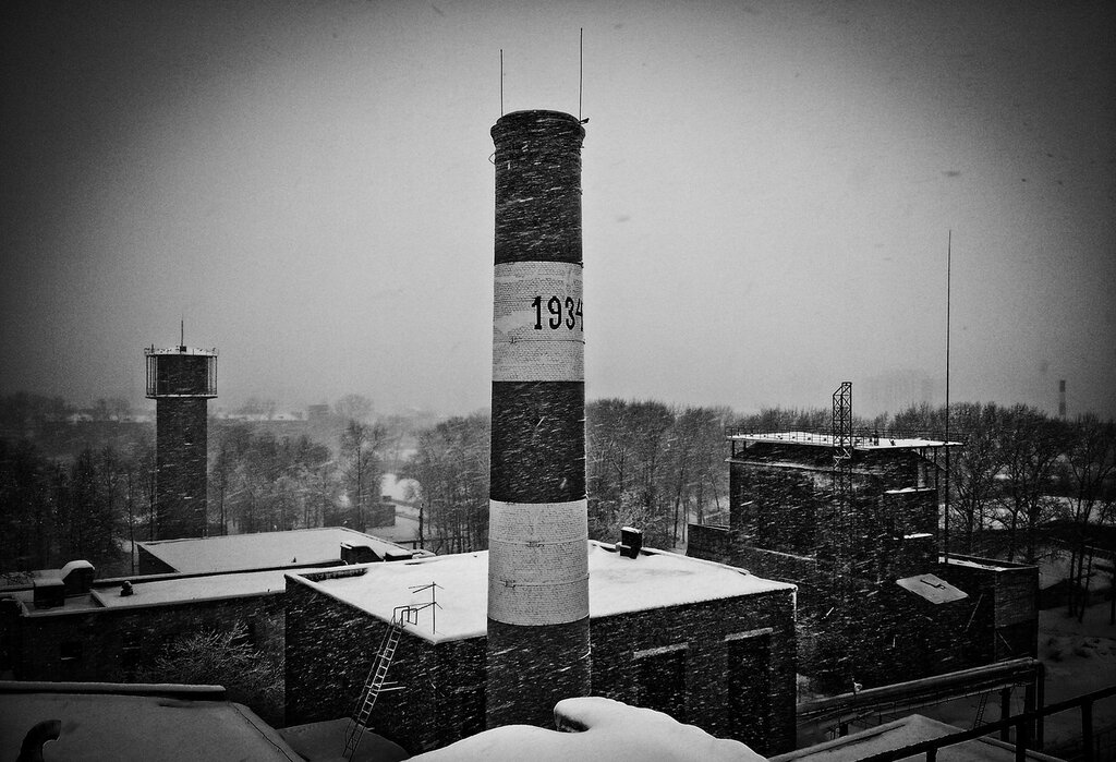 Захотелось посетить одну заброшенную башенку на крыше. Что и было сделано. Почти в самый разгар снегопада. Сотовый телефон, съемка. Немного зума в сторону промзоны. Пронизывающий и завывающий ветер, летящий снег, старые хлопающие окна и тяжелый люк с чердака. Нулевая видимость, большие сугробы наверху и в то же время — какая-то тишина.