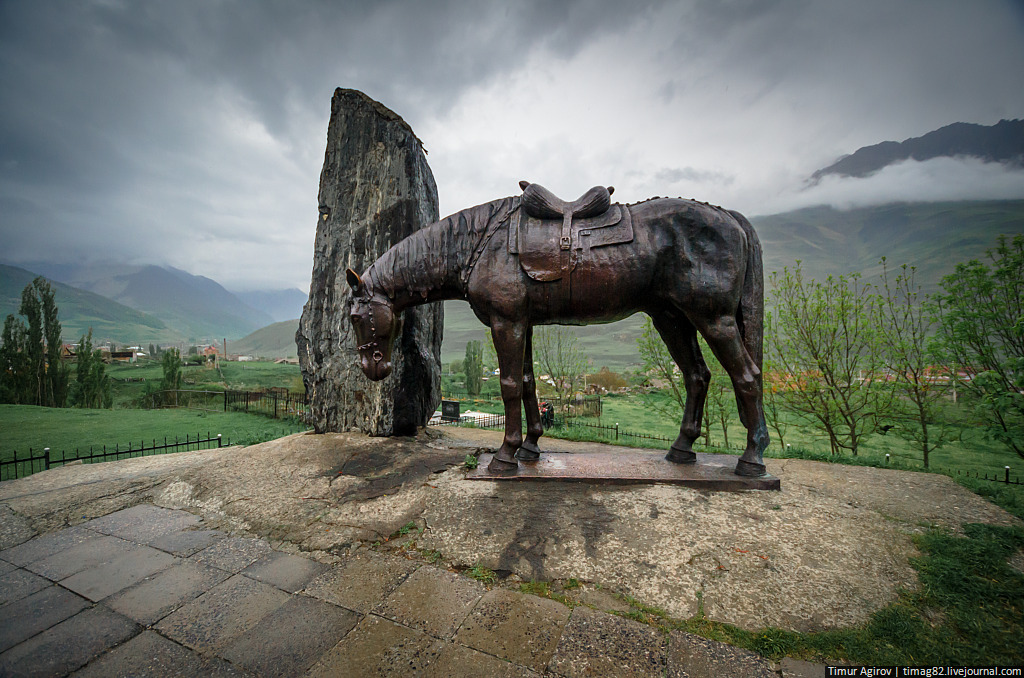 16. Памятник воинам-куртатинцам, погибшим во время Великой Отечественной войны (скульптор Даурбек Цораев). Верный конь оплакивает погибшего наездника.