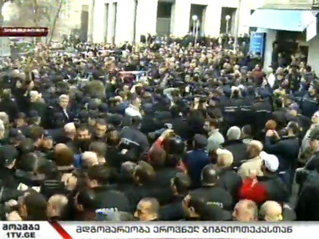 Толпа не пустила в здание не только Саакашвили. Мэр Тбилиси Гиги Угулава в пятницу также не смог пройти в здание Национальной библиотеки.