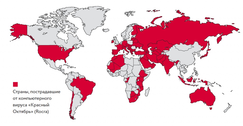 Впрочем, посольства — это вообще один из основных объектов атак «Красного Октября». В этом сегменте затронуты 45 стран.