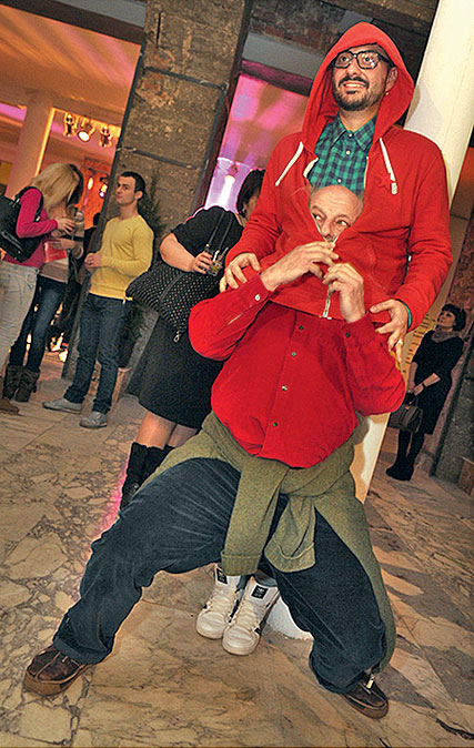| «Гоголь-центр» открылся спектаклем «00:00» Кирилла Серебренникова (на снимке справа он с Вячеславом Полуниным) . Часы бывшего Театра Гоголя начали отсчитывать новое время |