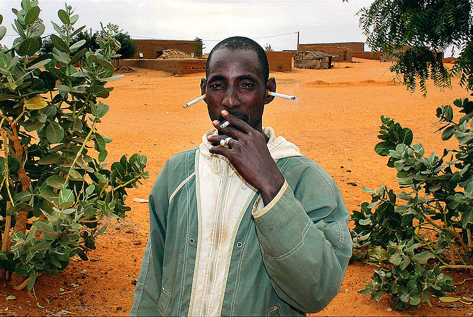 Житель Гао приветствует освободителей с сигаретами в ушах