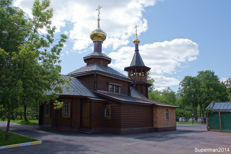 Храм построен в 2000 году; построен из дерева в подражание русскому деревянному зодчеству в стиле церкви "под колоколы". Самый высокий деревянный храм Москвы: высота от основания до креста — 46 м. Храм имеет статус подворья московского Данилова монастыря.