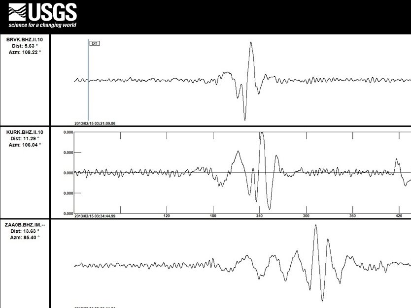 Атмосферный взрыв метеора над Челябинской областью вызвал значительные колебания земной поверхности, которые были отмечены в различных местах планеты, сообщает сайт американской Геологической службы (USGS).