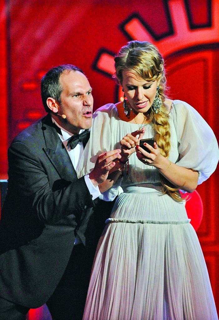 Татьяна Лазарева и Михаил Шац на съемке новогодней передачи для телеканала СТС 14.11.2005