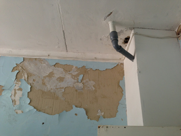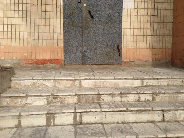 Я направился искать центральный вход, проходя мимо этой части здания, я был аккуратен, так как понимал, что в любой момент штукатурка может упасть на голову...