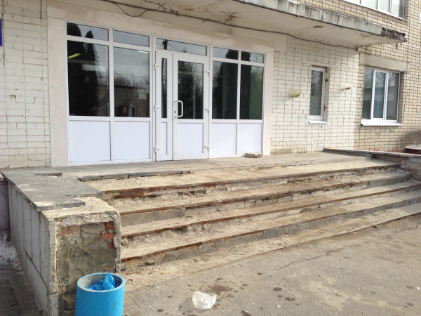 А вот так выглядит ВХОД, возникает вопрос: а как все-таки попасть с коляской в больницу?