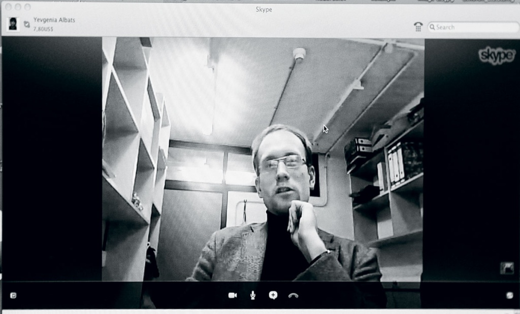 Андрей Заякин дает интервью The New Times по скайпу из своего офиса в университете Сантьяго-де-Компостела в Испании