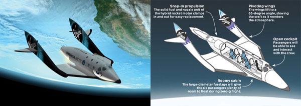 Аппарат Genesis В октябре 2011 года официально открылся первый частный космопорт — он построен в Нью-Мексико и имеет плановую пропускную способность в четыре полета в день. Строительство началось в 2008, после получения лицензии на запуск космических кораблей от Федерального управления гражданской авиации, и на данный момент оттуда стартовало уже более десятка суборбитальных кораблей.