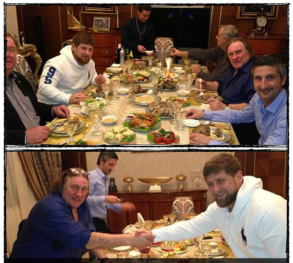 После нескольких дней в Мордовии Жерар Депардье отправился к своему старому знакомцу президенту Чечни Рамзану Кадырову. Самолет приземлился в Грозном в воскресенье вечером, приезд актера довольно подробно в своем инстаграме освещал сам Кадыров. После перелета, как видно на фотографиях, путешественника ждал накрытый стол, за которым было принято решение запустить проект «совместного американо-английско-французско-российского фильма "Сердце отца"». Основные съемки, как написал Кадыров, будут проходить в Грозном с участием чеченских актеров. После застолья Депардье решил станцевать лезгинку с чеченскими девушками, чем, конечно, привел в восторг гостеприимных хозяев.