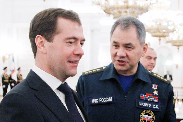 Фото: ИТАР-ТАСС Министр обороны Сергей Шойгу обогнал премьер-министра Дмитрия Медведева по популярности среди россиян. Как показал опрос "Левада-центра", если бы выборы президента России проходили в ближайшее воскресенье, то кандидатуру Шойгу поддержало бы 4% опрошенных, тогда как кандидатуру Медведева — только 2%.