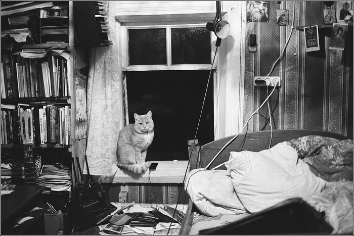 Кот у открытого окна в келье о. Аркадия. Декабрь на дворе.