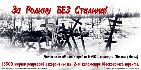 Напомню канву: группе горожан очень хотелось поднять голос в защиту здравого смысла, и в связи с 60-летием со дня смерти Сталина напомнить согражданам о некоторых фактах из биографии этого государственного деятеля, о которых кажется важным вспомнить в контексте нынешнего тренда на возвеличивание личности Сталина многими государственными и общественными деятелями. Объявили сбор средств, собрали 178000 рублей (от 32 граждан). Вроде, простая ситуация: какие-то люди хотят потратить деньги на то, чтобы донести до других людей свою точку зрения по определенному вопросу, никого не оскорбляя, не вступая в противоречие с законом и т.д. А теперь я расскажу, что получилось на практике. После внутреннего обсуждения решили плакаты делать на основе только подтвержденных, неоспариваемых исторических фактов, и отобрать для размещения факты как глобальные, так и имеющие отношение к истории Урала. Это решение было поддержано открытым голосованием членов общественной организации "Добровольческое движение", набрав требуемое по уставу организации количество голосов; организация, таким образом, согласилась выступить организатором проекта, заключить договора с рекламными агентствами, провести через себя деньги и т.д., тем снимая понятные организационные проблемы (просто так частное лицо не может сейчас заказать размещение рекламы). Мы выбрали 4 фразы - только факты, ничего больше: "Более 680000 человек приговорено к расстрелу особыми тройками НКВД без суда и следствия в 1937-1938 годах". "18500 жертв репрессий захоронены на 12-м километре Московского тракта." "С 1935 года расстрел применяется к несовершеннолетним, начиная с 12 лет." "Убыль сельского населения в 1933 - 1935 гг. от голода на Южном Урале составила 30%." И общий слоган: "За Родину без Сталина". Вот так это могло бы выглядеть (такой макет направлялся, среди прочих, в рекламные агентства):